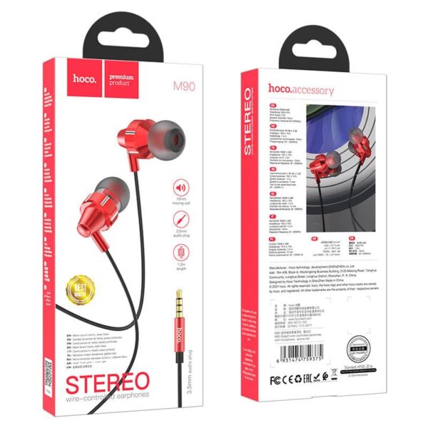 HOCO M90 ΑΚΟΥΣΤΙΚΑ DELIGHT WIRE-CONTROLLED, AURORA RED, 3.5MM