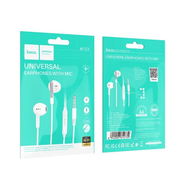 HOCO M124 ΑΚΟΥΣΤΙΚΑ 3.5MM JACK WIDE UNIVERSAL ΜΕ ΜΙΚΡΟΦΩΝΟ , ΛΕΥΚΑ