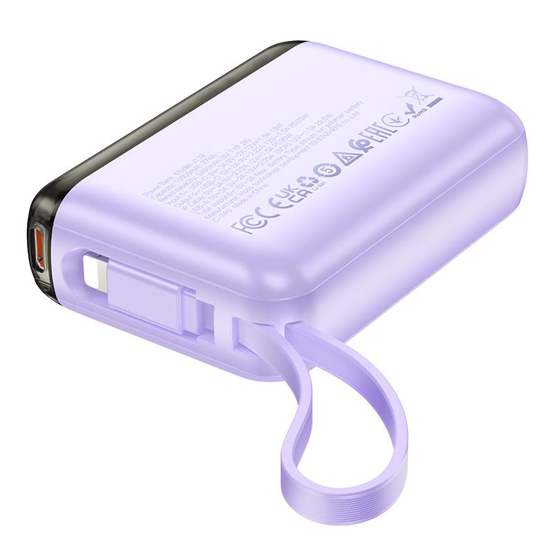 Χωρητικότητα: 10000mAh (37Wh) – Ονομαστική χωρητικότητα: 5400mAhΕίσοδος: USB-C: 18WΈξοδος: Καλώδιο USB-C/Lightning: 20W (PD/QC/FCP/AFC) USB-A: 22.5W (QC/FCP/SCP/AFC) Συνολική έξοδος: 5V/2AΈνδειξη: Ψηφιακή ένδειξη LEDΥλικό: Αντιφλογιστικό κέλυφος από PC+ABS + κυψέλη 21700Διαστάσεις: 85 x 61.5 x 26 χιλ.Βάρος: 195g