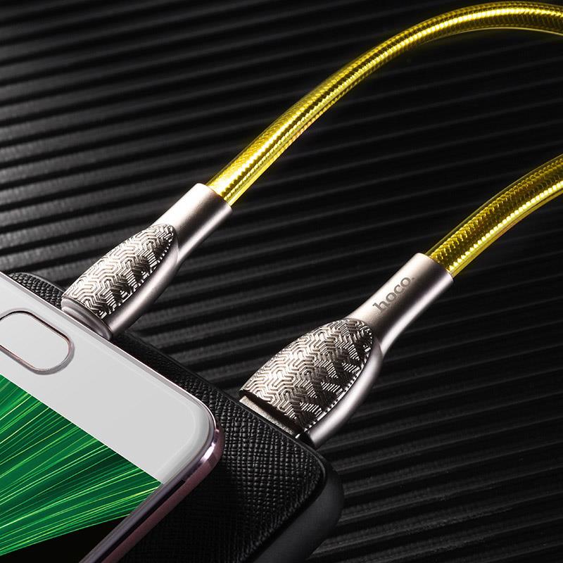 U52 Bright charging data cable 2.4A USB to Micro-USB 1.2m length zinc alloy joints transparent PVC braid1. Cable length is 1.2 m, weight is only 43g, so it is perfect for travel.2. Cable interface USB to Micro-USB, maximum current 2.4A, therefore you can charge your device very fast, cable support charging and data transfer.3. Color: Silver, golden, black.4. Material: zinc alloy, embossed surface texture, jelly-weaved (aluminum foil braided + transparent PVC braid), so the cable is thick, firm and reliable.5. Core: oxygen-free tinned copper, wire core : (43/0.08+250d nylon) *2C+ (16/0.08+250d nylon) *2C OD: 6.0*3.0mm.